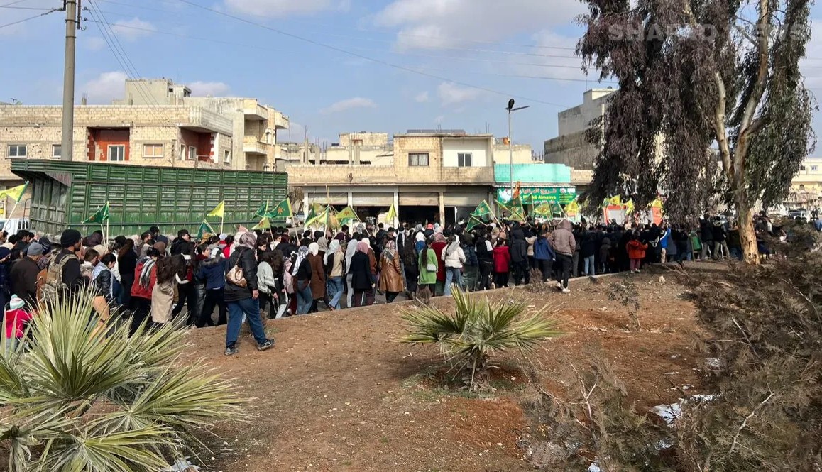 خرج المئات من أهالي مدينة كوباني في سوريا، يوم الثلاثاء، إحياءً للذكرى الـ11 لتحرير المدينة من تنظيم “داعش”، وللمطالبة بوقف الهجوم الذي تشنه القوات الحكومية على المنطقة، وسط أوضاع إنسانية متدهورة تشهدها المدينة.