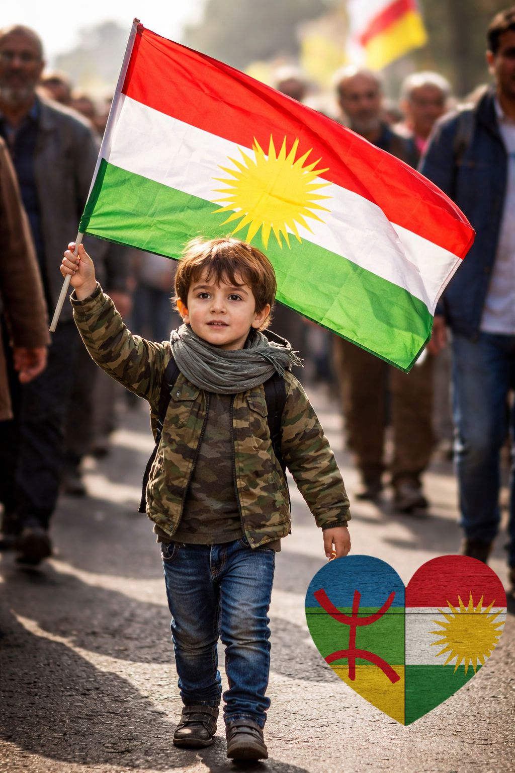 في شوارع الدار البيضاء، المغربية، وقف طفل أمازيغي صغير يحمل علم كوردستان، يمشي مع المحتجّين في تظاهرة تضامنية مع الشعب الكوردي. عيناه تلمعان بالدموع، وهو يردد:”من يكبر على حبّ وطنه لن يُهزم بسهولة”.