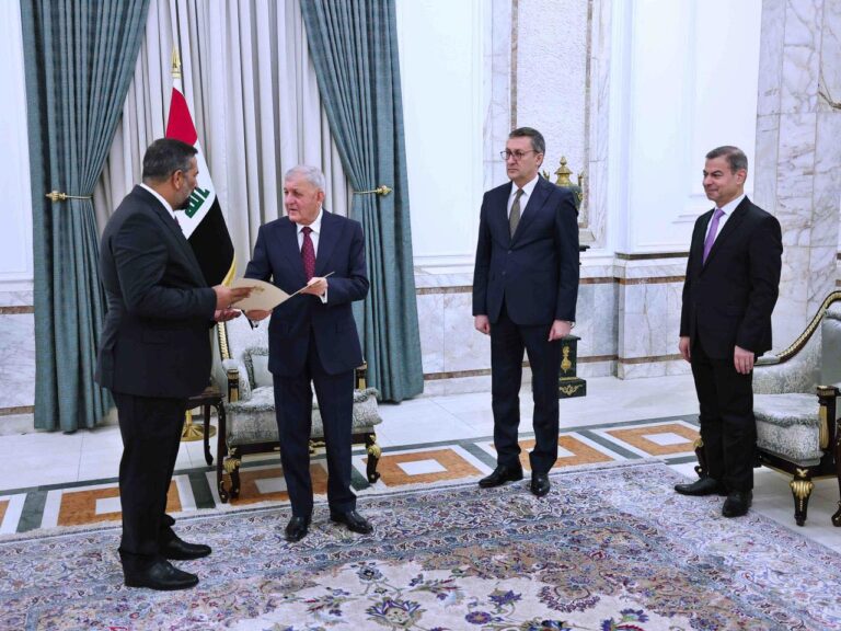 سلم فخامة رئيس الجمهورية الدكتور عبد اللطيف جمال رشيد اليوم الأحد 1 شباط 2026 في قصر بغداد، السيد علي تركي، المرسوم الجمهوري الخاص بتعيينه محافظا لبابل.