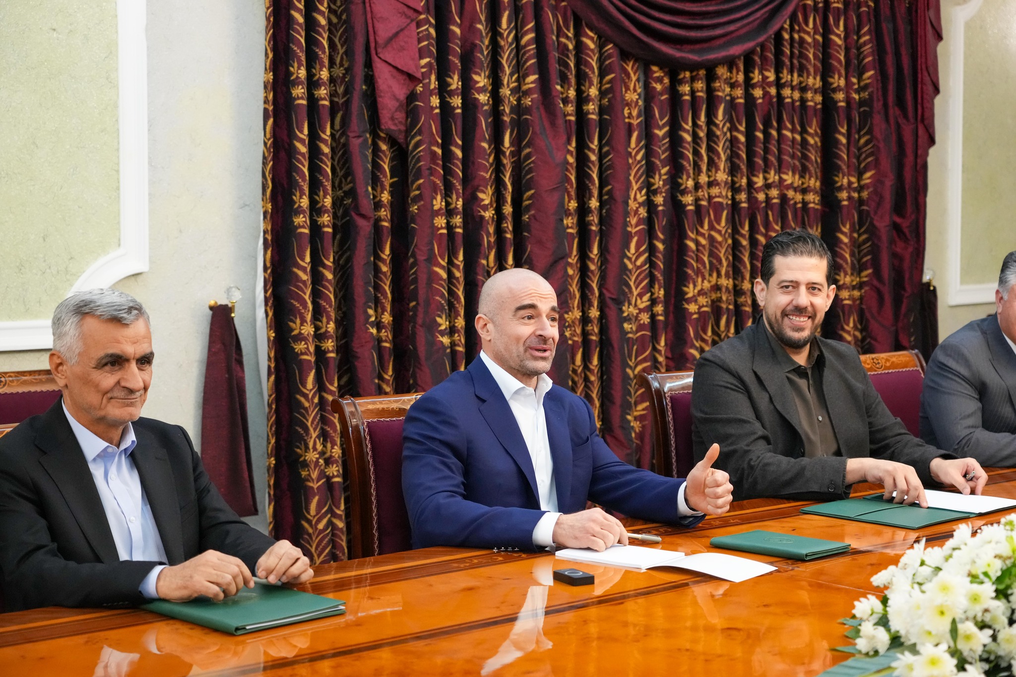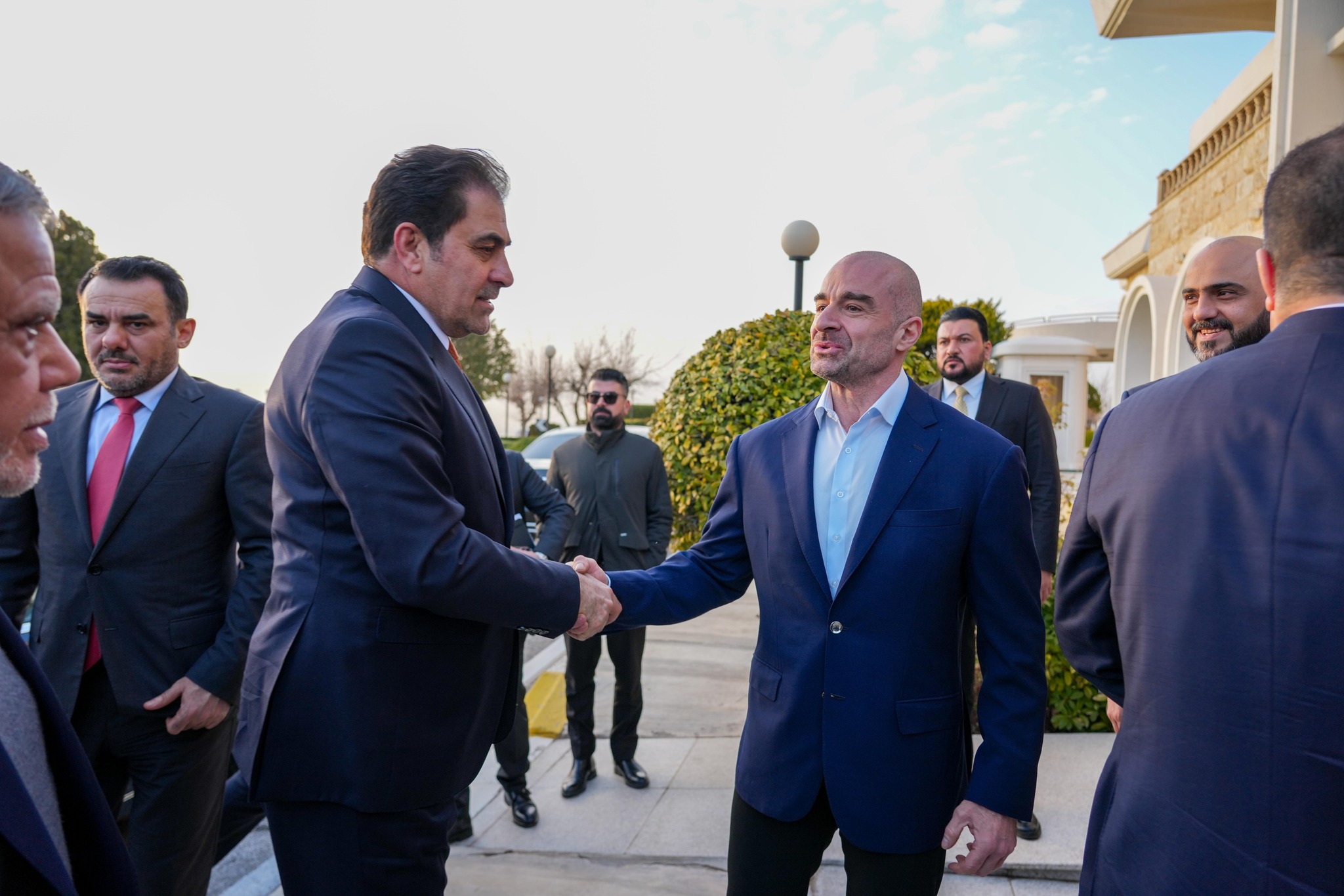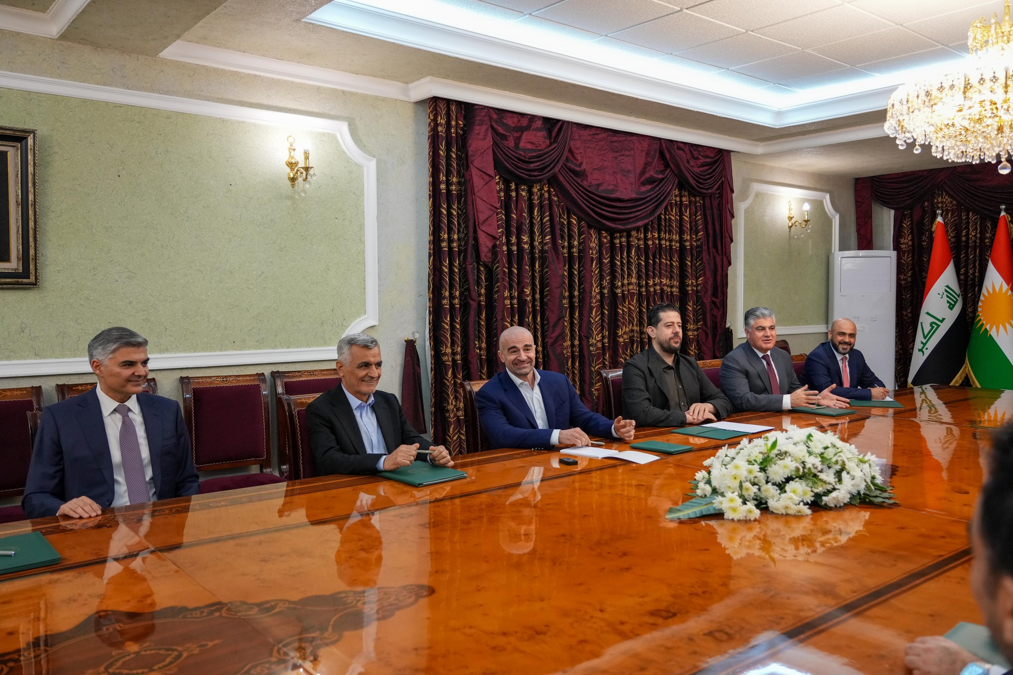 وكان في استقبال الوفد بمطار السليمانية، وفد رفيع من إقليم كوردستان تقدمه نائب رئيس الاتحاد الوطني الكوردستاني رفعت عبد الله وعضو المكتب السياسي شالاو كوسرت رسول بالإضافة إلى محافظ السليمانية الدكتور هفال أبو بكر.