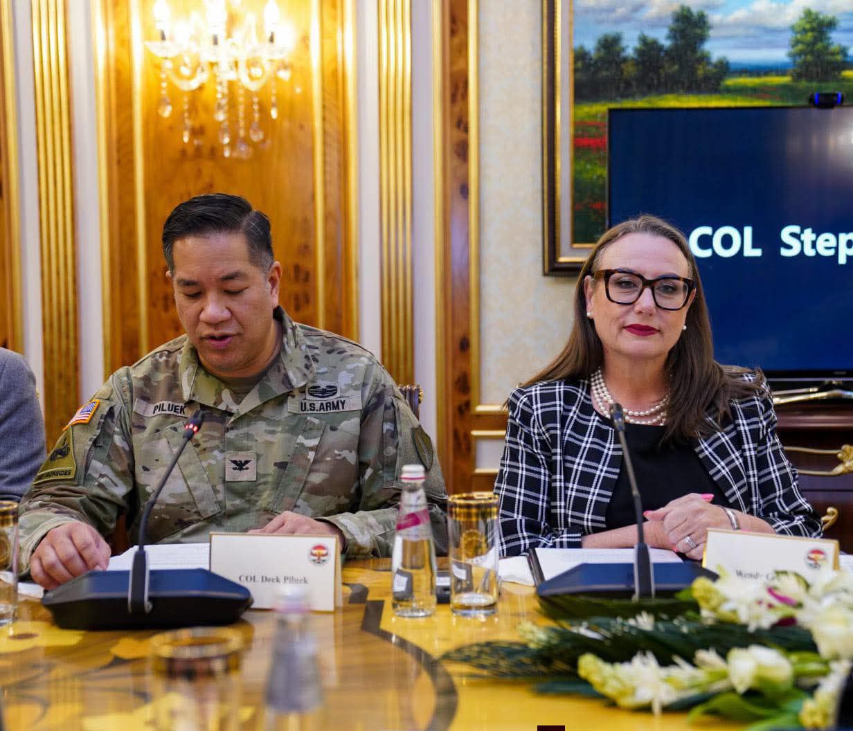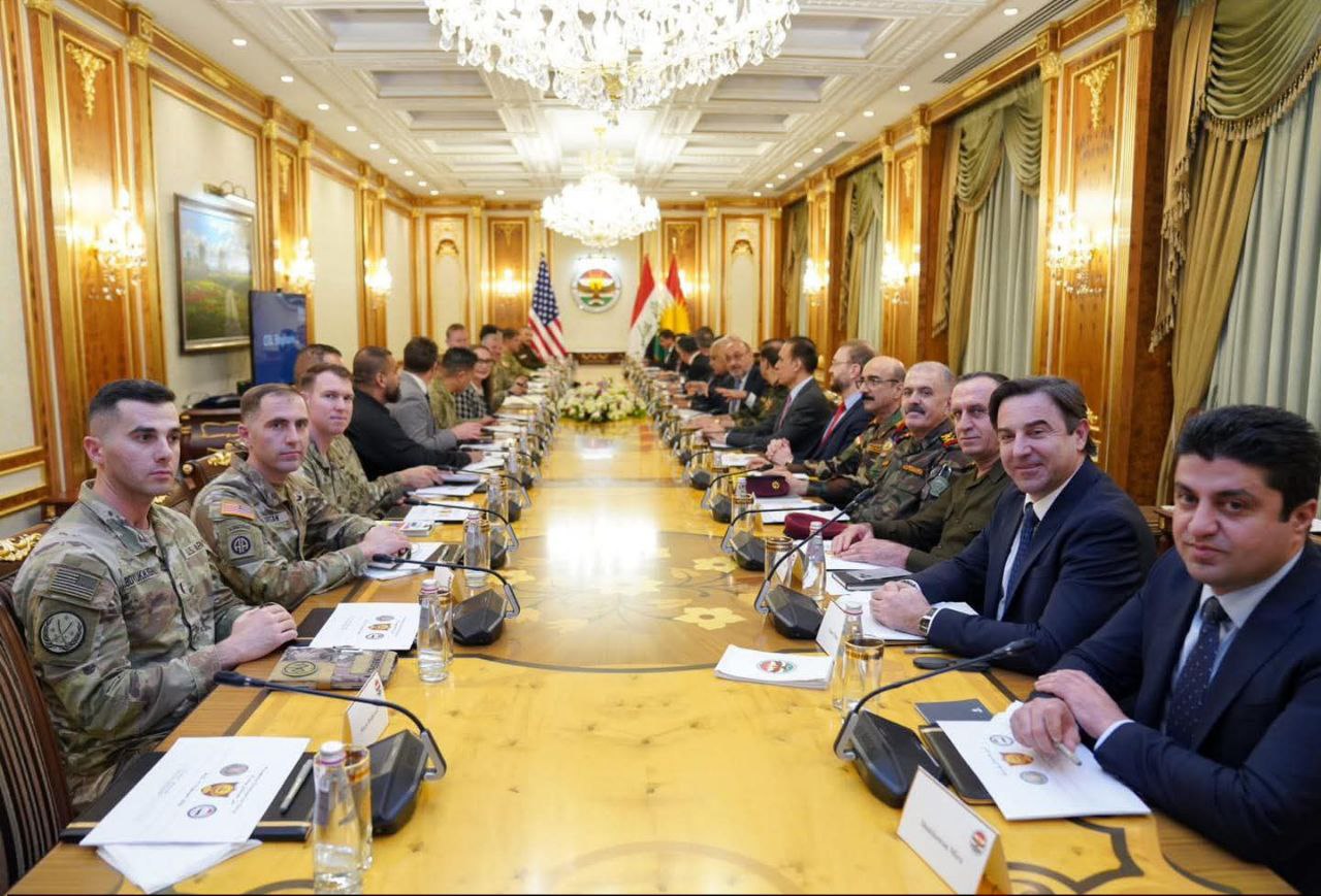 أشرف الشيخ جعفر الشيخ مصطفى نائب رئيس اقليم كوردستان، والسيدة ويندي غرين القنصل الامريكي العام في اقليم كوردستان، اليوم الاربعاء 18/2/2026 في رئاسة الاقليم، على اجتماع مهم لبحث مراحل عملية إعادة تنظيم وتوحيد قوات البيشمركة، وذلك بحضور وفد دبلوماسي وعسكري امريكي ومسؤولين من رئاسة وحكومة الاقليم والمؤسسات العسكرية وقادة قوات البيشمركة.