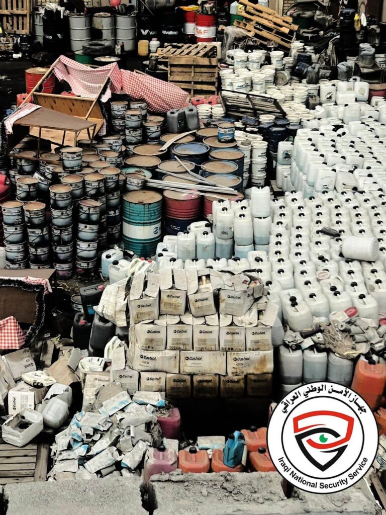 وأضاف البيان أن “المداهمة أسفرت عن ضبط كمياتٍ ضخمة من ماء الراديتر وسائل التبريد وزيوت محركات السيارات التالفة ومنتهية الصلاحية، كانت تُعاد تعبئتها أو يُتلاعب بتواريخ صلاحيتها بغية تسويقها على أنها صالحة للاستخدام”.