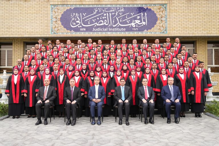 وفي ختام حديثه: “أبارك باسمي ونيابة عن مجلس القضاء الأعلى، تخرجكم، متمنياً التوفيق لكم في أداء مهامكم في سوح القضاء، كما أتقدم نيابة عنكم بالشكر الجزيل للملاك التدريسي والإداري في المعهد القضائي الذي يعود له الفضل في تحقيق هذا المنجز الذي نفخر به”.
