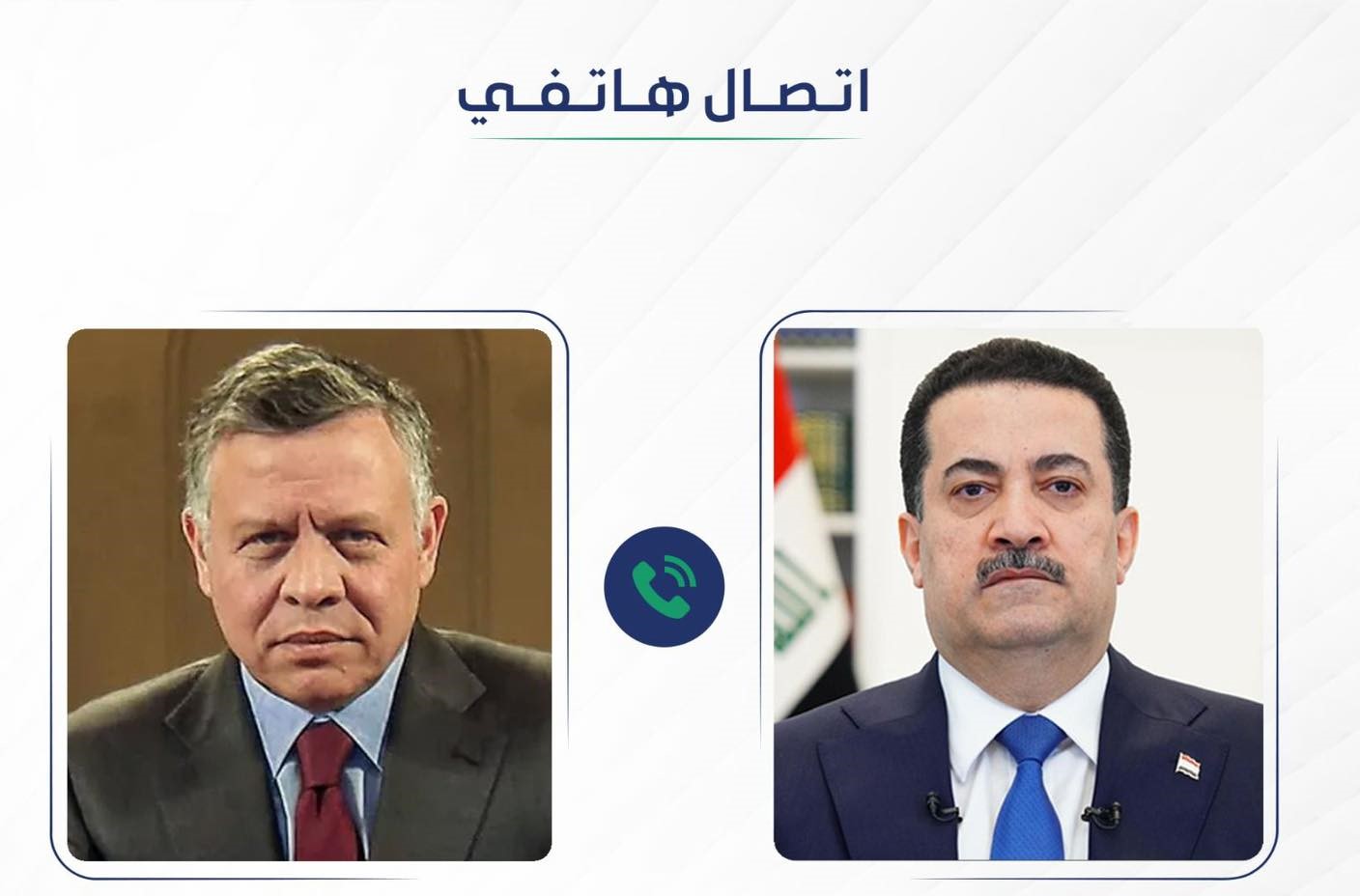 وذكر المكتب الإعلامي لرئيس مجلس الوزراء، في بيان تابعه المسرى ، أن “رئيس مجلس الوزراء، محمد شياع السوداني، بحث مع العاهل الأردني عبد الله الثاني بن الحسين، في اتصال هاتفي، اليوم الخميس، تطورات الأحداث في المنطقة”.