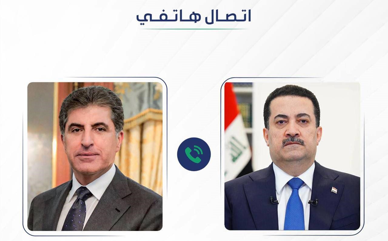 بحث رئيس مجلس الوزراء محمد شياع السوداني، في اتصال هاتفي مع رئيس إقليم كوردستان العراق نيجيرفان بارزاني، اليوم السبت، آخر تطوّرات الأوضاع في العراق والمنطقة، والجوانب الأمنية على المستوى الوطني، وسبل تأكيد الأمن والاستقرار.