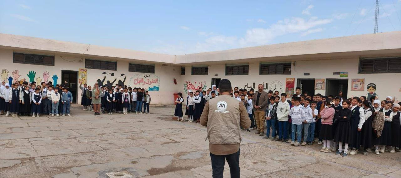 نفذت دائرة شؤون الألغام التابعة لوزارة البيئة، الثلاثاء 31 , آذار 2026 بالتعاون مع مديرية النشاط الرياضي والمدرسي في مديرية تربية الكرخ، حملة توعوية استهدفت تلاميذ مدرسة الرشيد الابتدائية في منطقة اليوسفية بمحافظة بغداد، للتعريف بمخاطر الألغام والمتساقطات الحربية وسبل التعامل الآمن معها.