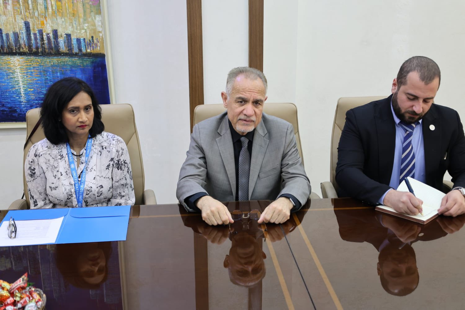 عقد وزير البيئة الدكتور هه لو العسكري اجتماعًا مهمًا مع رئيس بعثة الأمم المتحدة في العراق السيد إسحاق غلام، ومديرة برنامج الغذاء العالمي لدى العراق شيلا ماثيو، لبحث سبل تعزيز التعاون المشترك في مواجهة التحديات البيئية والإنسانية في البلاد.