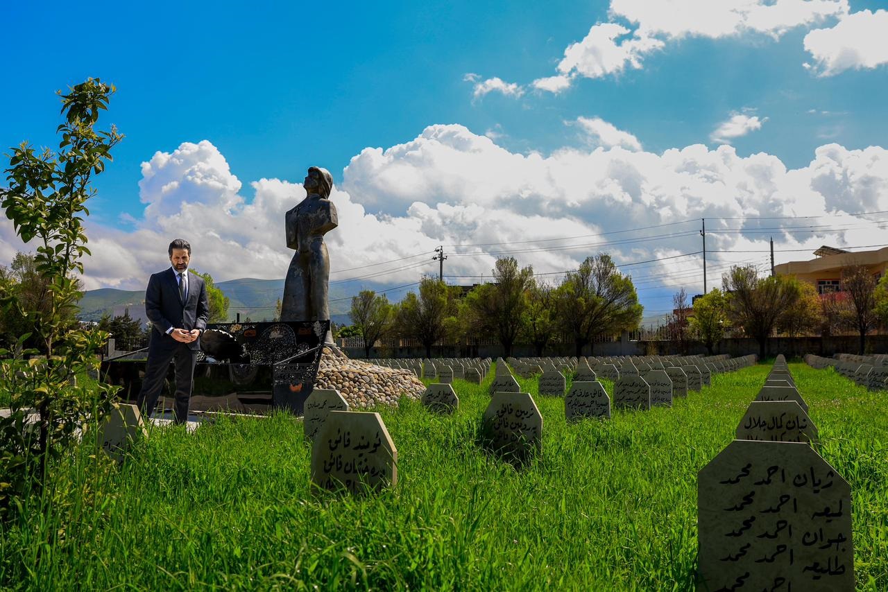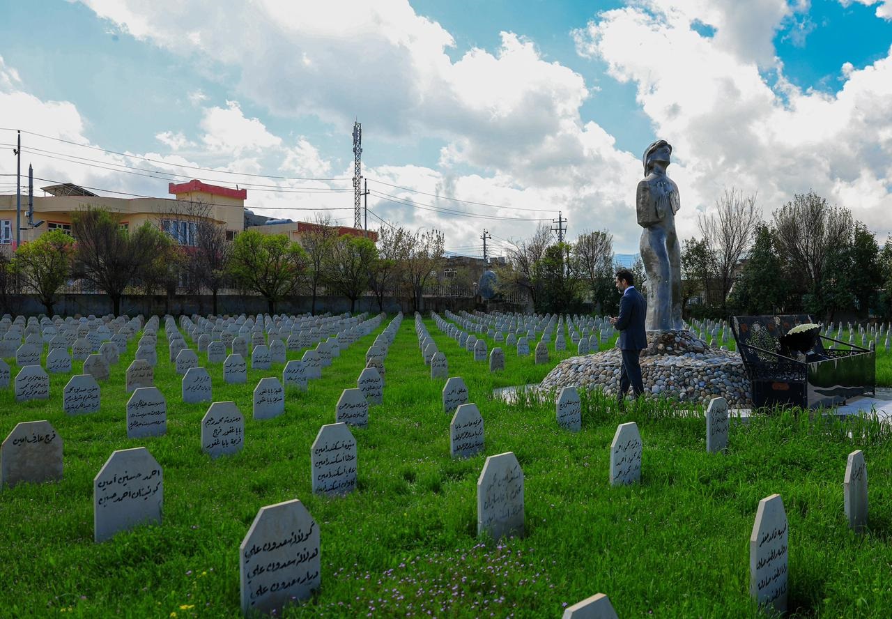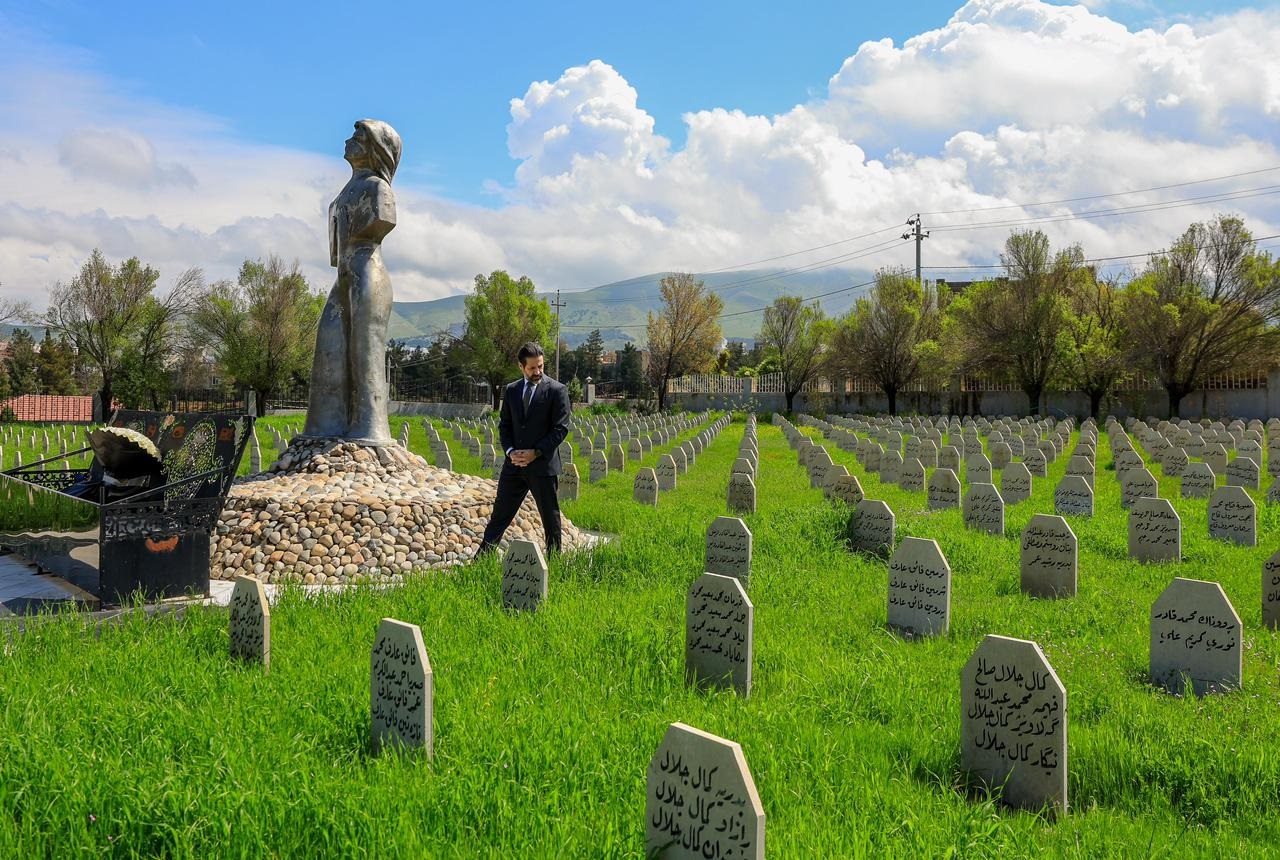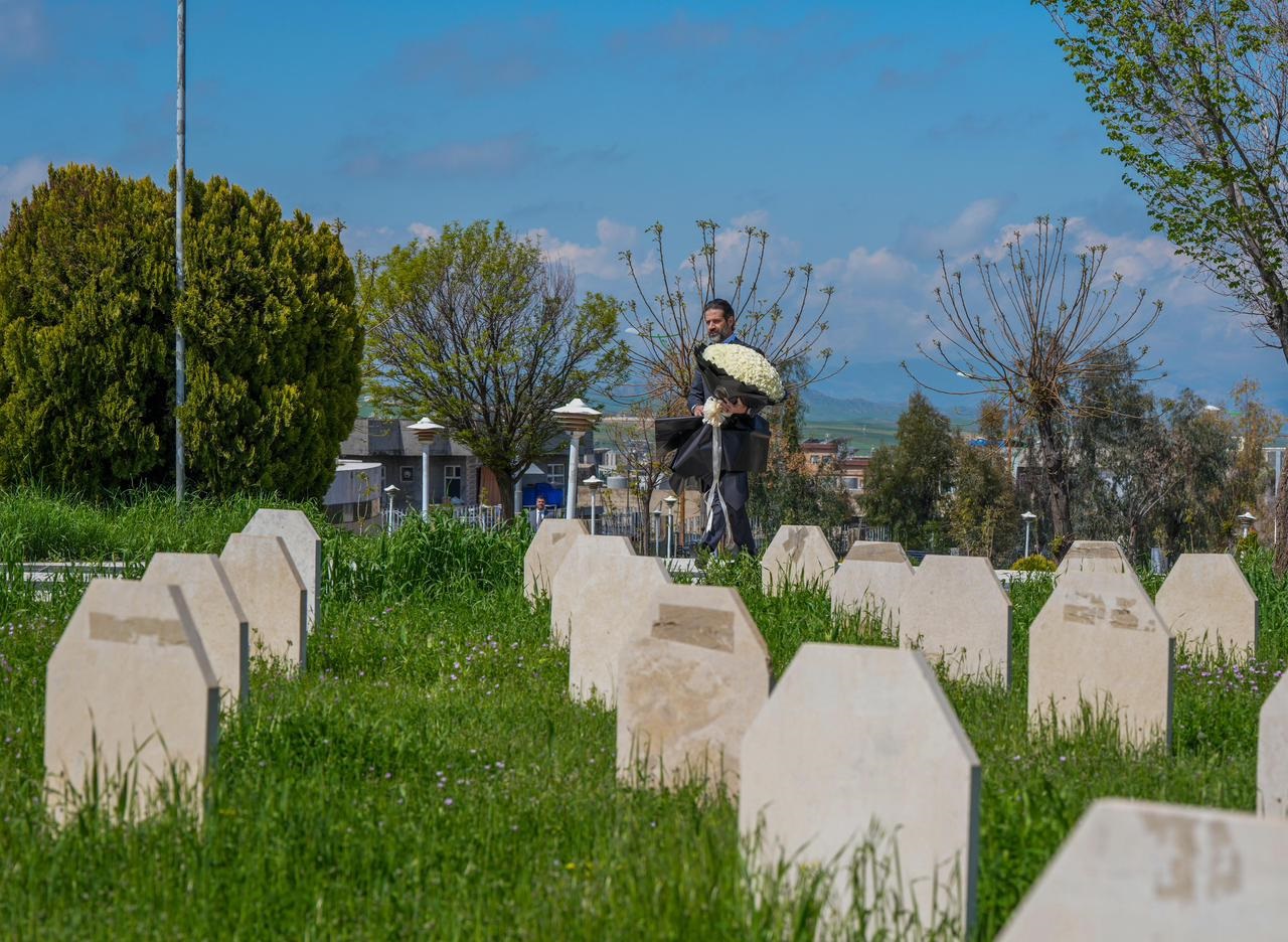 بالفيديو .. قوباد طالباني .. جولة وسط مقابر شهداء حلبجة