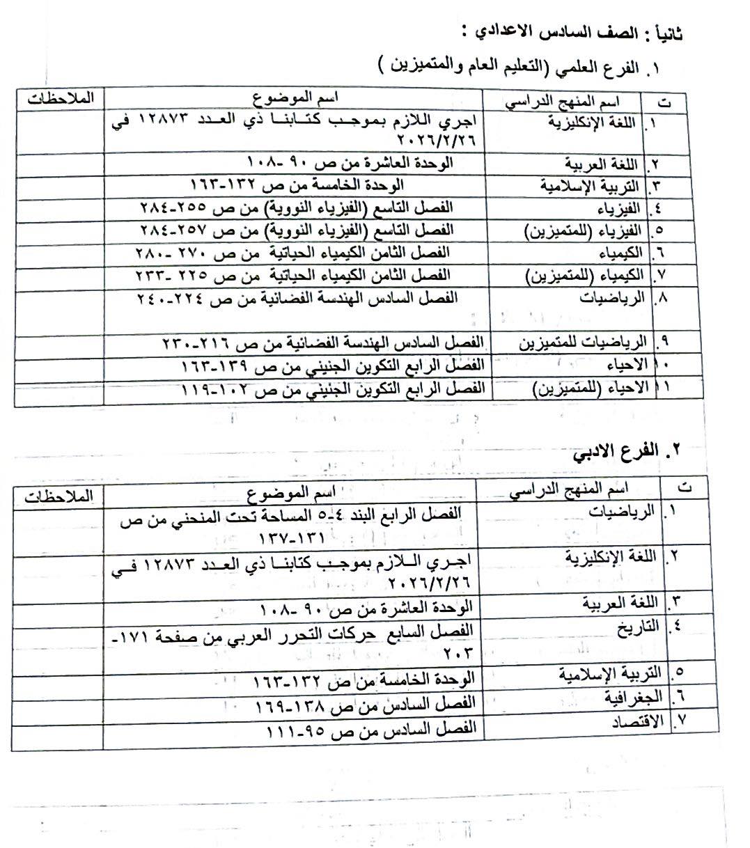 وبيّن أن التعديلات شملت موضوعات محددة من مواد دراسية مختلفة للدراستين المتوسطة والإعدادية.