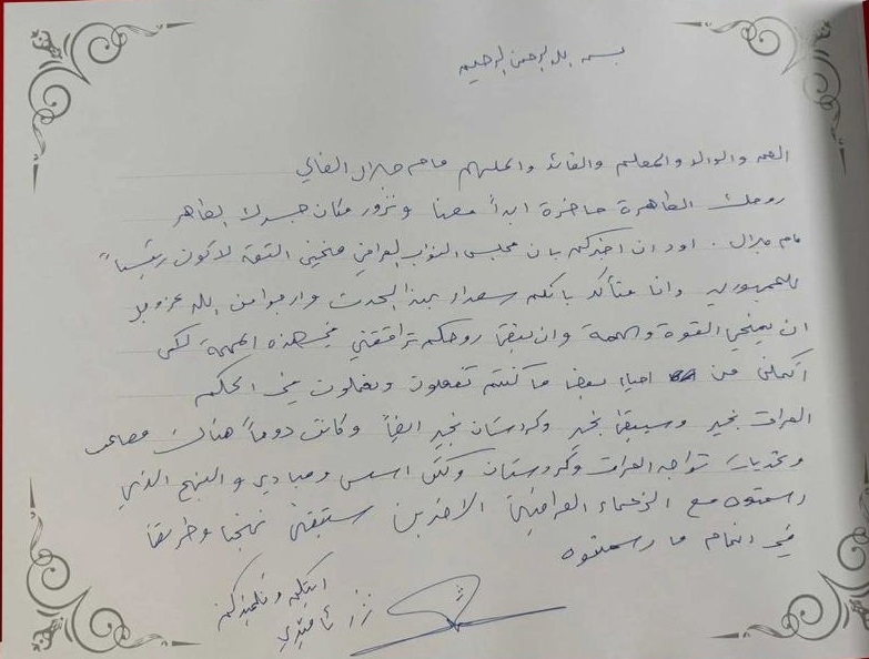 وأضاف السيد الرئيس:”الأسس والمبادئ والنهج التي رسمتموها مع الزعماء العراقيين الآخرين ستبقى نهجنا وطريقنا في إتمام ما رسمتموه”.