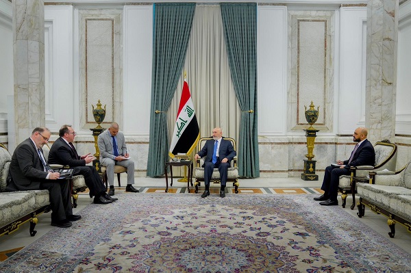 وقال بيان لمكتبه:”إن الرئيس استقبل القائم بأعمال سفارة الولايات المتحدة الأمريكية في العراق جوشوا هاريس، الذي نقل اليه تهاني بلاده بمناسبة انتخابه رئيساً للجمهورية”.