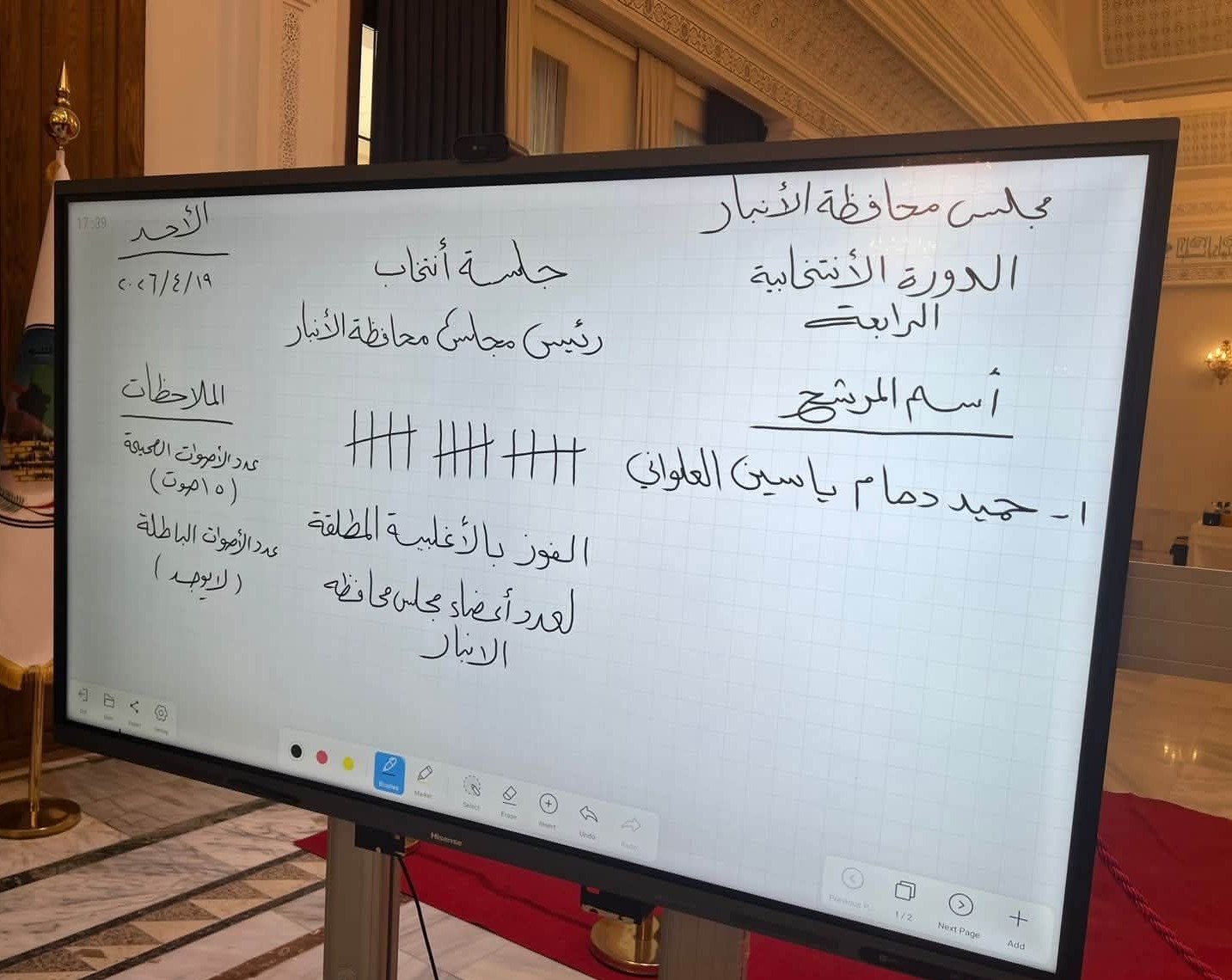 انتخب أعضاء مجلس محافظة الأنبار، اليوم الأحد ، حميد دحام العلواني رئيساً لمجلس المحافظة، بالأغلبية المطلقة.