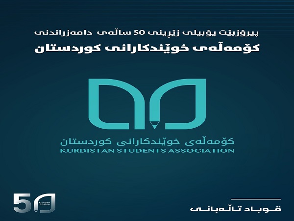 بكل فخر واعتزاز نحتفل اليوم بالذكرى الخمسين لتأسيس جميعة طلبة كوردستان، ونقدر تاريخ جمعيتكم الحافل بالنضال والتضحيات. وبهذه المناسبة، نتقدم بأحر التهاني إلى المدراء وجميع أعضاء جميعة طلبة كوردستان.