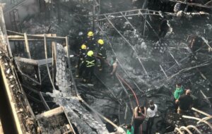 واضاف ان “فرق الدفاع المدني موجودة في المكان وتحاول السيطرة على الحريق”.