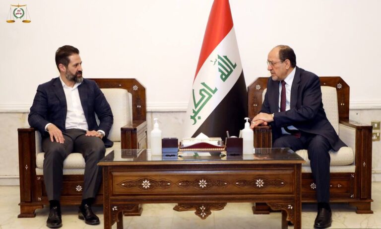 بحث رئيس ائتلاف دولة القانون نوري المالكي بمكتبه الخاص اليوم الثلاثاء ، مع نائب رئيس حكومة اقليم كوردستان قوباد طالباني والوفد المرافق له ، مستجدات الاوضاع السياسية والامنية في البلاد ، فضلا عن تداعيات حادثة استهداف مطار السليمانية.