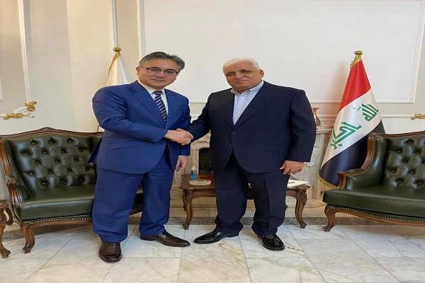 بحث رئيس هيئة الحشد الشعبي فالح الفياض والسفير الياباني لدى بغداد فوتوشي ماتسوموتو، اليوم الخميس، العلاقات الثنائية بين البلدين وسبل تعزيزها”.