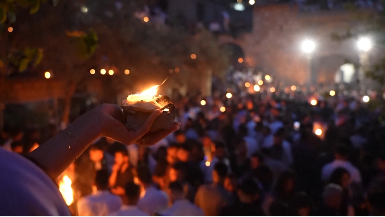وحيث يقف إمام الديانة الإيزيدية بابا شيخ يتلو الصلاة بهذه المناسبة و يشعل الفتائل أثناء الاحتفال ، فأن الناس تحيط به وتتبرك بألتقاط بعض الفتائل المشتعلة وتحاول الحفاظ عليها قدر المستطاع حتى آخرها ..