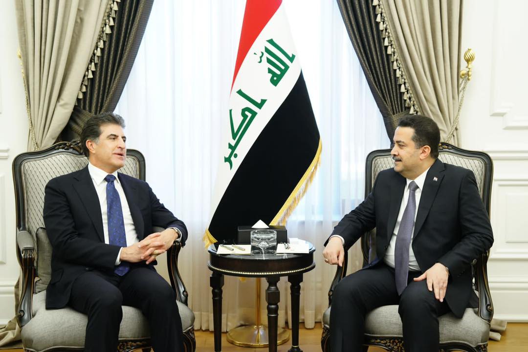 استقبل رئيس مجلس الوزراء محمد شياع السوداني، اليوم الخميس، رئيس إقليم كردستان العراق، نيجيرفان بارزاني.
