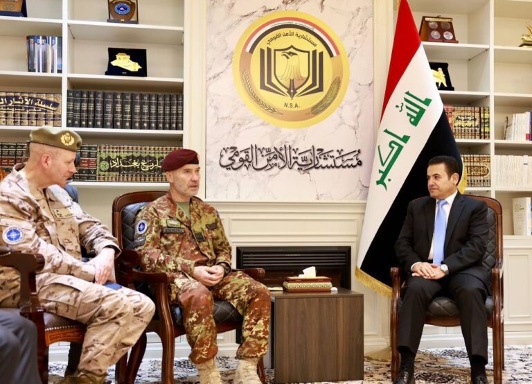 وفي بيان لمكتبه الإعلامي تابعه المسرى أن “مستشار الأمن القومي قاسم الأعرجي استقبل بمكتبه قائد بعثة حلف الناتو في العراق جيوفاني ماريا أنطونيو، بمناسبة انتهاء مهام عمله، بحضور قائد البعثة الجديد، الفريق خوسيه انطونيو اويرو”، مقدما شكره باسم الحكومة العراقية لما قدمه قائد البعثة السابق من جهود”، ومعربا عن سعادته باستقبال القائد الجديد.