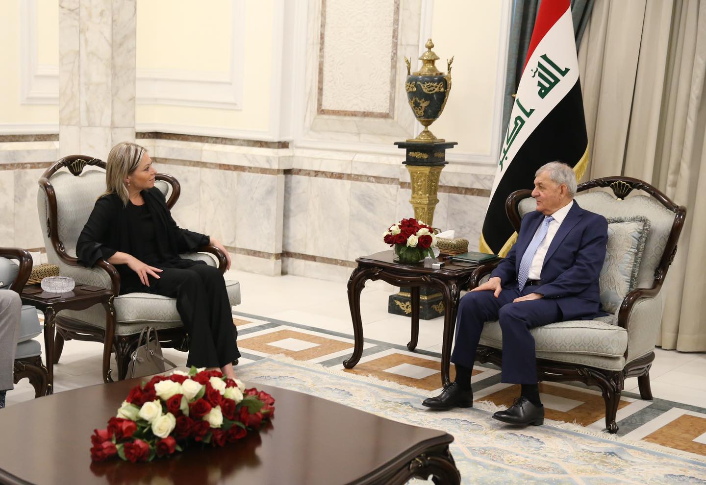 كما ناقش الرئيس مع بلاسخارت “دور بعثة الأمم المتحدة في العراق وأهمية العمل والتنسيق لتذليل المعوقات أمام عدد من القضايا سيما قضية النازحين ومكافحة التغييرات المناخية والبيئية وشحة المياه”.