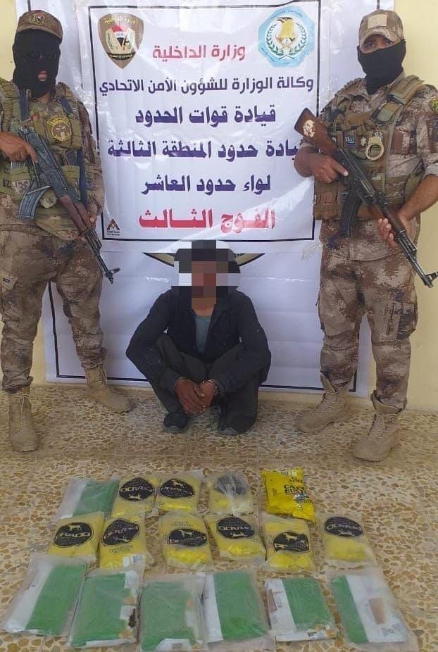 مبينة أن المعتقل كان “بحوزته (17) كغم من المخدرات موضوعة بأكياس كل كيس يزن كيلو غرام واحد كان يحاول إدخالها الى الأراضي العراقية، حيث تم اتخاذ الإجراءات القانونية اللازمة بحقه وتسليمه إلى الجهات المختصة”.