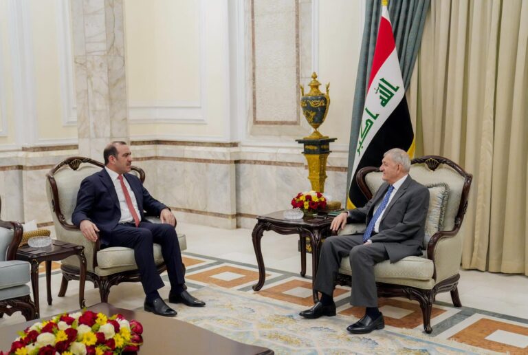 وقال المكتب الإعلامي لرئاسة الجمهورية في بيان تابعه المسرى، أن “رئيس الجمهورية عبد اللطيف جمال رشيد، استقبل اليوم في قصر بغداد، وزير الصناعة والمعادن خالد بتال”، مبيناً أنه “جرى خلال اللقاء بحث خطط الوزارة لفتح المجال للقطاع الخاص وتشجيع عمل المصانع والمعامل وبما يُحقق توفير المنتجات”،حيث أكد “رئيس الجمهورية أهمية ذلك في تعزيز الوضع الاقتصادي في البلد وتوفير فرص العمل للشباب”.