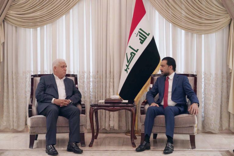 بحث رئيس مجلس النواب محمد الحلبوسي مع رئيس هيئة الحشد الشعبي فالح الفياض، الأحد، الجهود المبذولة في مجال مكافحة الإرهاب.