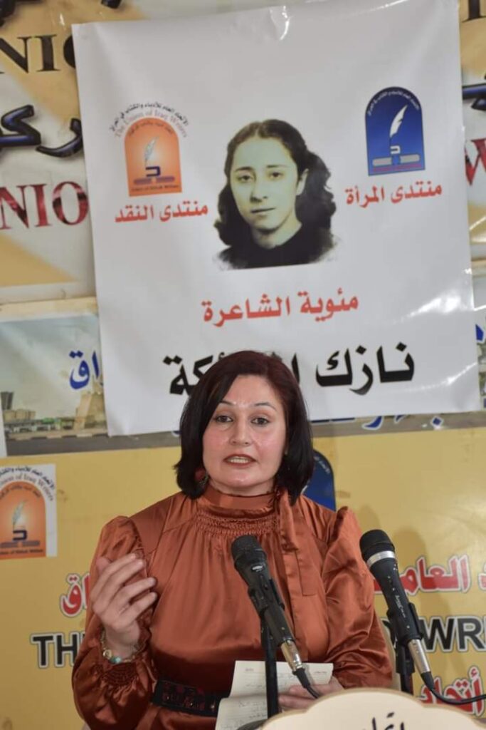 وألقت في الجلسة الشعرية التي أدارها الأديب فاروق مصطفی، الشاعرات ندى سلطان وذكريات عبدالله وغربة قنبر وبصيرة تسينلي وجوان كريمات وآية سردار وگولر قوريالي قصائدهن بالمناسبة.كما شاركت الناقدة گولدان عدنان بتقديم دراسة عن دور الشاعرة نازك الملائكة في الريادة الشعرية .