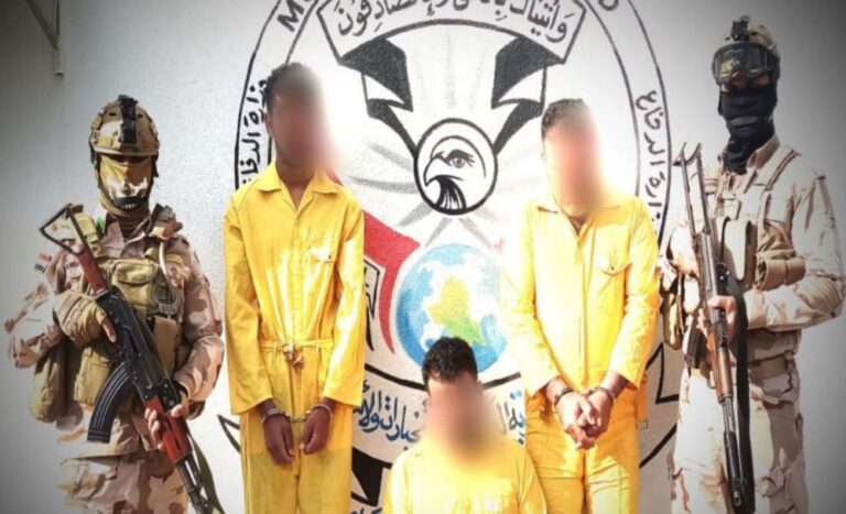 وجرى إلقاء القبض من خلال تكثيف الجهد الاستخباري ومقاطعة المعلومات الواردة، وبالتنسيق مع فوج مغاوير قيادة عمليات كركوك وقوة اقتحام قائد شرطة كركوك، فيما اُتخذت الاجراءات القانونية اللازمة بحقهم.