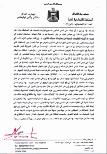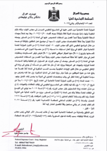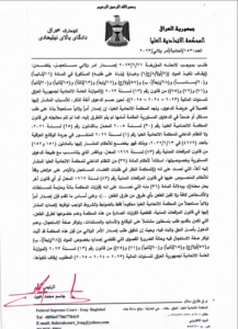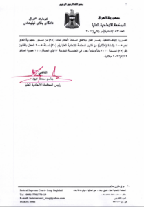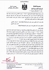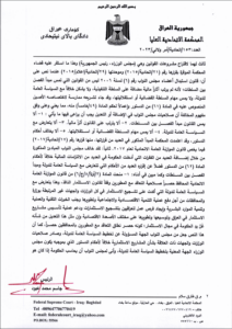 وقالت المحكمة في بيان تابعه المسرى، انها “اصدرت امر ولائي بالعدد (153 / اتحادية / امر ولائي /2023 ) بتاريخ 12 /7 /2023 تضمن ايقاف تنفيذ المواد الآتية : المادة ((28/ رابعاً: أ- ب ) و (57/ أولاً -ج) و (65/ ثانياً) و (70/ ثانياً) و(71) و(75) من قانون رقم (13) لسنة 2023 (الموازنة العامة الاتحادية لجمهورية العراق للسنوات المالية (2023 – 2024 – 2025) لحين البت بالدعوى الدستورية المقامة أمام هذه المحكمة للطعن بدستوريتها المسجلة بالعدد (153/اتحادية/2023)”.