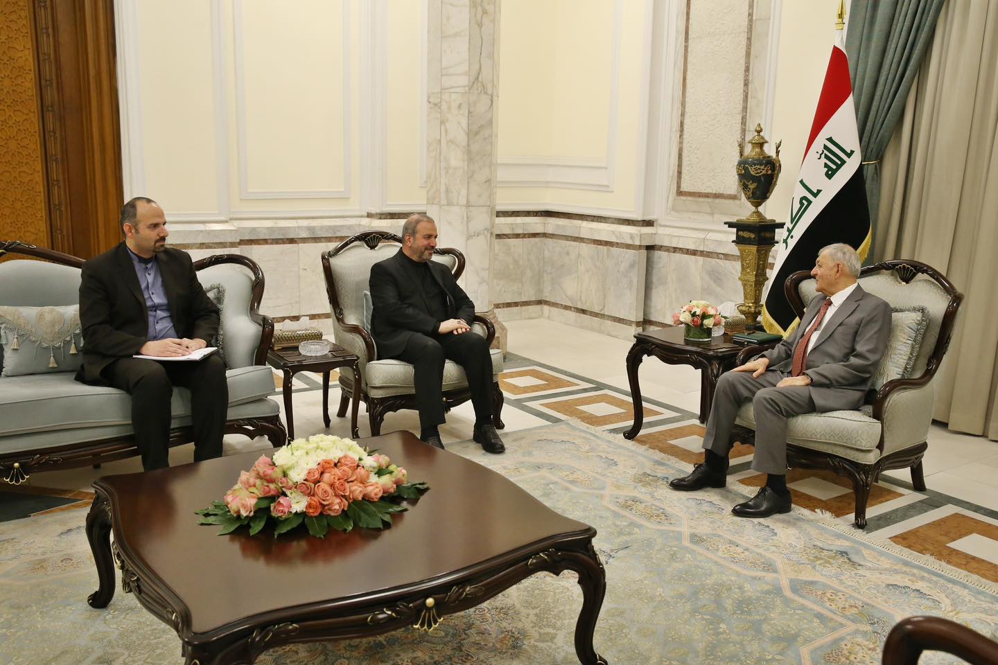 بحث رئيس الجمهورية عبد اللطيف جمال رشيد اليوم الأحد 23 تموز 2023 في قصر بغداد مع السفير الإيراني لدى العراق محمد كاظم آل صادق. أهمية الارتقاء بمستوى العمل الثنائي الرامي لمواجهة التغيرات المناخية وشح المياه والجفاف الذي يواجه العالم.