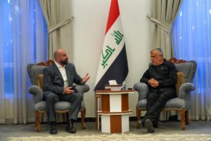 وجرى خلال اللقاء التباحث حول الحوار والتنسيق بين القوى والأطراف السياسية في العراق وإقليم كوردستان باتجاه حل جذري للمشكلات، وإنجاح برنامج عمل الحكومة وضمان الرفاهية للمواطنين”.
