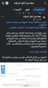 رفض المجتمع الكربلائي توجيه ممثل الأمم المتحدة في الفرات الأوسط، علي عبد الحسين كمونة، خطاباً لمحافظ كربلاء يخص تنظيم دورة تدريب مدربين تتعلق بالنوع الاجتماعي.