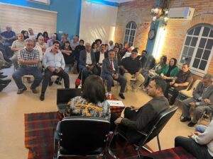 و شارك في الجلسة عدد من الحضور من خلال مداخلاتهم التي تركزت علی انتخابات محافظة كركوك ، ومن ثم تم تكريم الدكتورة شيلان فتحي بدرع صالون شارع الجمهورية مقدمة من مؤوسسة كركوك الاعلامية .