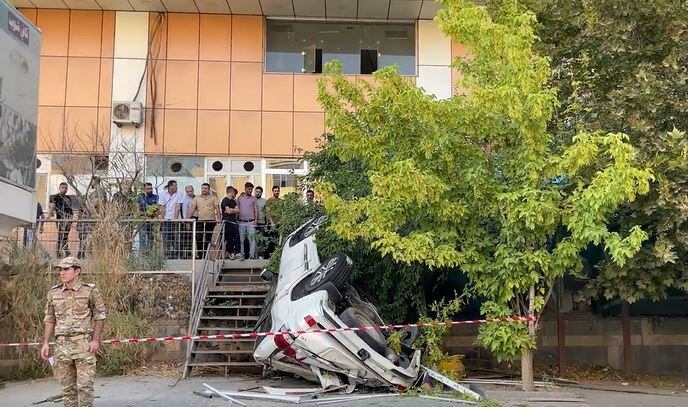 سقطت سيارة من نوع تويوتا لاندكروز بسائقها من مرآب في الطابق الثالث بإحدى مناطق مدينة دهوك.