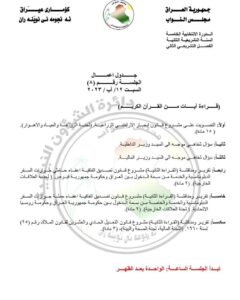 شاركها فيسبوك تويتر لينكدإن بينتيريست البريد الإلكتروني نشر مجلس النواب جدول أعمال جلسته التي ستعقد السبت المقبل. وبحسب الجدول فإنه سيتم توجيه سؤالين شفهيين الى وزيري الداخلية والمالية. ويتضمن الجدول كذلك تقرير ومناقشة (القراءة الثانية) لعدد من مشاريع القوانين. almasra