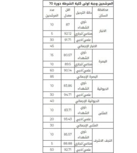 أعلنت وزارة الداخلية،اليوم الاثنين، إرسال رسائل نصية إلى المرشحين للوجبة الأولى من المتقدمين على كلية الشرطة دورة 70 فيما حددت أقل المعدلات التي تم ترشحيها