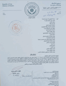 وقالت الوزارة بحسب وثيقة تابعه المسرى ، ان “قانون تحصيل الديون الحكومية رقم 56 لسنة 1977 المعدل لم ينص على منع الأشخاص المخولين لتطبيق احكامه المنصوص عليهم بالمادة الثانية منه وهم (الوزراء ووكلاء الوزارات، وامين بغداد ومدراء البلديات في المحافظات والمحافظين ورؤساء المؤسسات والمدراء العامين، واي موظف اخر لا تقل درجته عن الدرجة الرابعة من قانون الخدمة المدنية او ما يقابلها في قوانين وقواعد الخدمة الأخرى بتخويل من الوزير المختص، مدراء النواحي بالنسبة لتوجيه الإنذار)، صلاحية منع سفر المدين”.