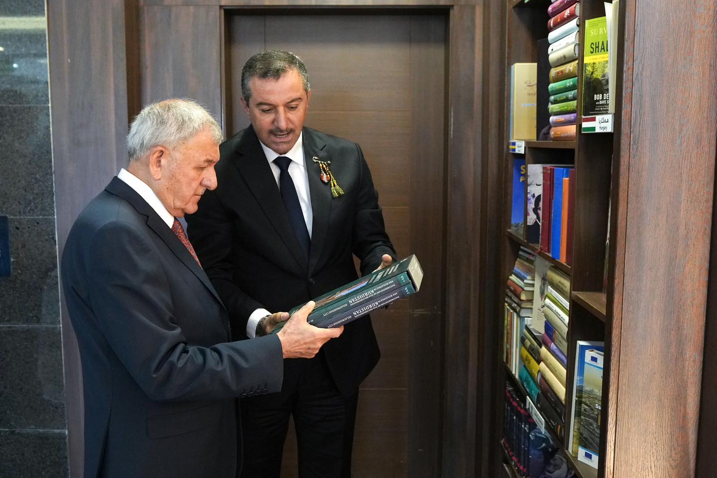 كما اطلع رئيس الجمهورية على مكتبة المحافظة، مبيناً أهمية انشاء مراكز ثقافية تعرف بالثقافة الكردية وتاريخها، فضلاً عن الحفاظ على الآثار الموجودة في المحافظة والاهتمام بالمتحف الخاص بها.
