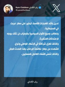 الكلداني: نطالب جميع القوى السياسية والأحزاب أن تقف بوجه الاعتداءات المتكررة