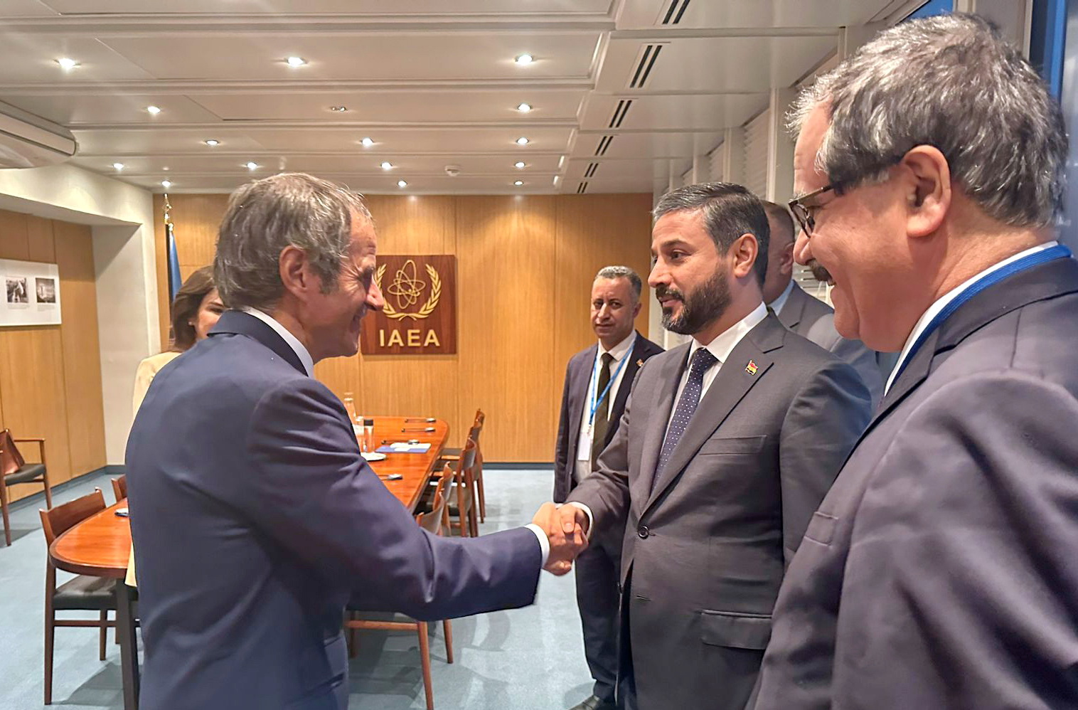 من جهته أعرب السيد رافائيل ماريانو غروسي عن “رغبته بزيارة العراق ودعم الوكالة الدولية له في مجال الاستخدام السلمي للطاقة”.