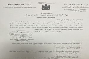 وجاء في الوثيقة ، “حصلت موافقة رئيس مجلـس الـوزراء القائد العام للقوات المسلحة محمد شياع السوداني على اتخاذ ما يلزم بشـأن تخصيص وتوزيـع أراض سـكنية للــوزارات والأجهـزة الأمنيـة والعسكرية وهيئـة الحشـد الشـعبي ومفاتحـة الجهـات ذات العلاقـة وفـق القـانون والقرارات التشريعية النافذة كـلاً حسب اختصاصـه بالتنسيق مع الجهات أعـلاه لضمان تحقيق العدالـة فـي شـمـول كافة منتسبيهم”.