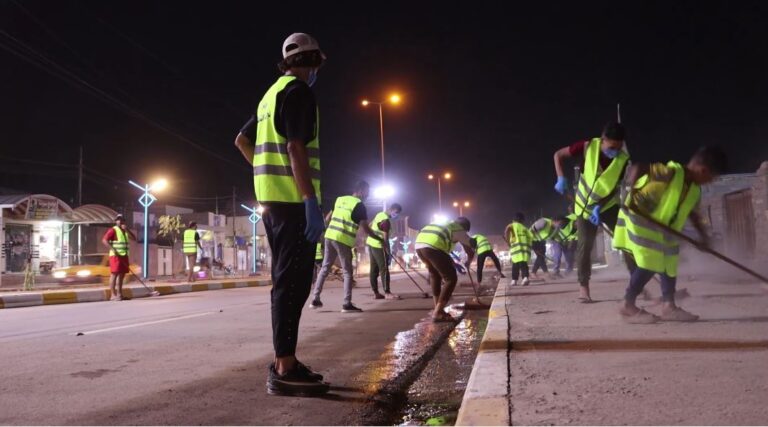 ومن جانبه أوضح صاحب المبادرة علي نصير للمسرى ” الكل يعلم ان شوارعنا متهالكة وتحتاج إلى تأهيل وتطوير إلى جانب إنشاء طرق جديدة تستوعب كل هذا الزخم من السيارات والمواطنين، ومع هذا نرى أن الأوساخ والنفايات أصبحت مكدسة على الشوارع، لذلك ارتأينا أن نخرج بحملة تطوعية لتنظيفها، وفورا وافق الشباب على الفكرة دون تردد وبدأنا بتنفيذها “، لافتا إلى أن ” كل الشباب المشاركين في حملة التنظيف هذه هم من أبناء المنطقة والأحياء السكنية المجاورة لبعض “، مبينا أن ” تامين التجهيزات ومستازمات التنظيف كلها قد تم شرائها من حسابه الشخصي، وأن حملة التنظيف مستمرة منذ ما يقارب الثمانية أيام وستستمر للأيام القادمة أيضا، واكثر أوقات العمل يكون مساء لغاية 12 بعد منتصف الليل .