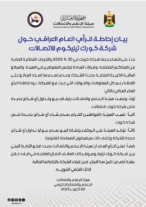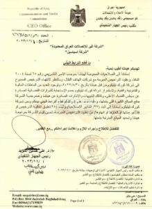 وبحسب “وثيقة ” حصل عليها المسرى ، فإنه “إستناداً الى الصلاحيات الممنوحة لهيئتنا بموجب الأمر التشريعي رقم ٦٥ لسنة ٢٠٠٤ النافذ، وعقود التراخيص المبرمة مع شركات الهاتف النقال، وبالنظر لانتهاء الترخيص الممنوح الى شركة كورك تيليكوم من قبل هيئتنا بتأريخ ۲۰۲۲/۸/۳۰، ولوجود العديد من المتعلقات المالية والقانونية والفنية، ولاستمرار شركة كورك تيليكوم بعدم الإستجابة للقرارات القضائية الصادرة عن مجلس القضاء الأعلى”.