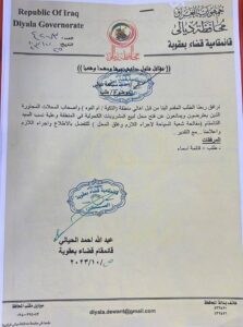 شاركها فيسبوك تويتر لينكدإن بينتيريست البريد الإلكتروني نوهت (وثيقة ) صدرت عن قائمقامية قضاء بعقوبة، حصل المسرى على نسخة منها ، يطلب فيها اهالي منطقتي (التكية وام النوه) التابعتين لقضاء بعقوبة مركز محافظة ديالى بالاعتراض والممانعة بشأن قرار وزارة الثقافة والسياحة بمنح اجازة بيع الخمور في الاحياء السكنية.