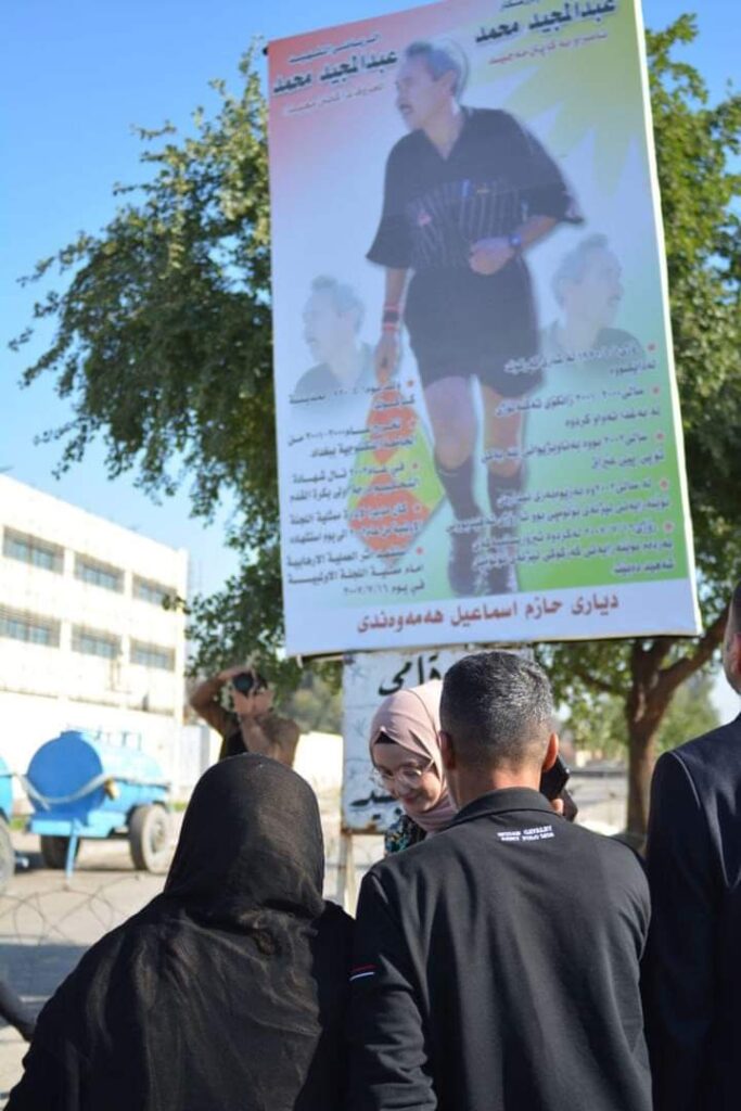 أقيم في حي رحيم آوه بمدينة كركوك، اليوم الأحد، مراسيم خاصة لإزاحة الستار عن صورة الحكم الرياضي الكروي الشهيد عبد المجيد محمد بحضور مسؤولين حزبيين ورياضيي المدينة وذوي الشهيد.