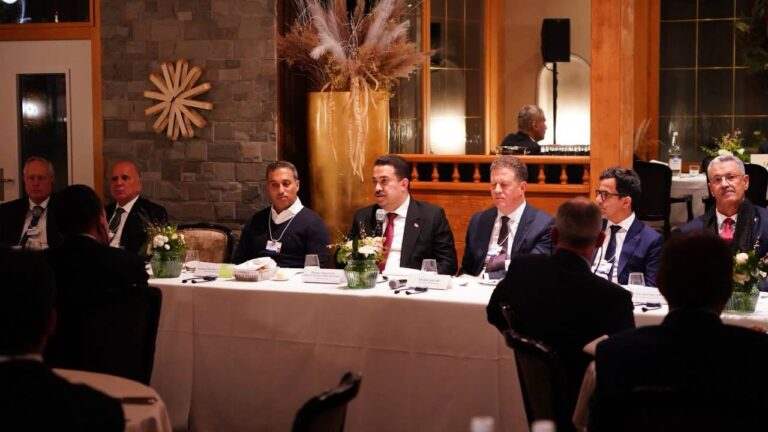 وقال مكتبه الإعلامي في بيان تابعه المسرى إن “رئيس مجلس الوزراء محمد شياع السوداني حضر لقاء عمل شارك فيه رؤساء وممثلو 57 شركة عالمية مُختصة في مجالات الطاقة والنفط والغاز ومجالات اقتصادية متنوعة، على هامش مشاركته في منتدى دافوس الاقتصادي المنعقد في سويسرا”.