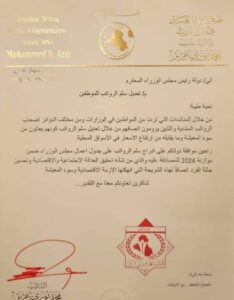 شاركها فيسبوك تويتر لينكدإن بينتيريست البريد الإلكتروني كشفت ( وثيقة ) عن مخاطبة عضو المالية النيابية محمد نوري عزيز ، رئيس مجلس الوزراء محمد السوداني بشأن تعديل سلم الرواتب للموظفين. almasra