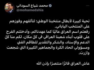 السوداني للمنتخب الوطني: لكم منا كلّ الدعم والإسناد