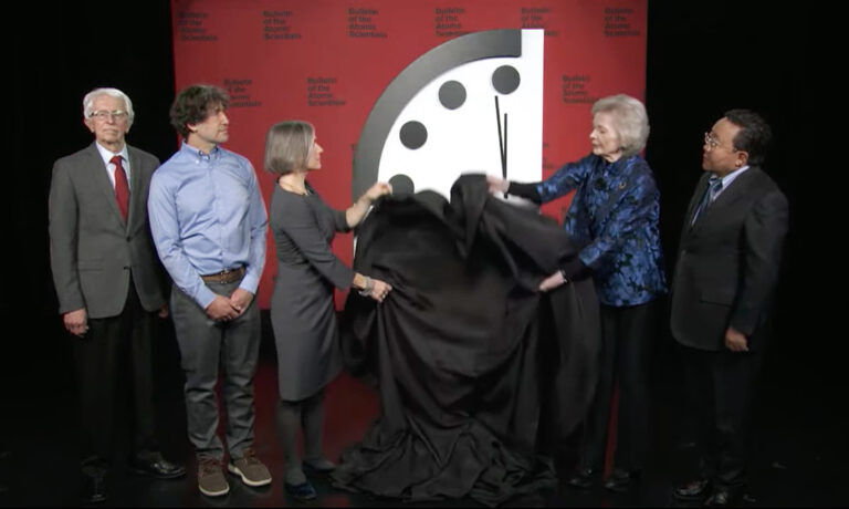 تقترب “ساعة القيامة” أكثر فأكثر من حلول منتصف الليل الذي يعني وصولها إليه نشوب حرب نووية تنفي البشرية، بعد أن قرر علماء الذرة الثلاثاء تحريك عقاربها لتصبح عند 90 ثانية فقط قبل “نهاية العالم”، بسبب “مخاطر وجودية” مثل التهديدات النووية المرتبطة خصوصا بالغزو الروسي لأوكرانيا والحرب في غزة، ناهيك عن التغير المناخي و”تقنيات مدمرة” كالذكاء الاصطناعي والتكنولوجيا الحيوية الجديدة.